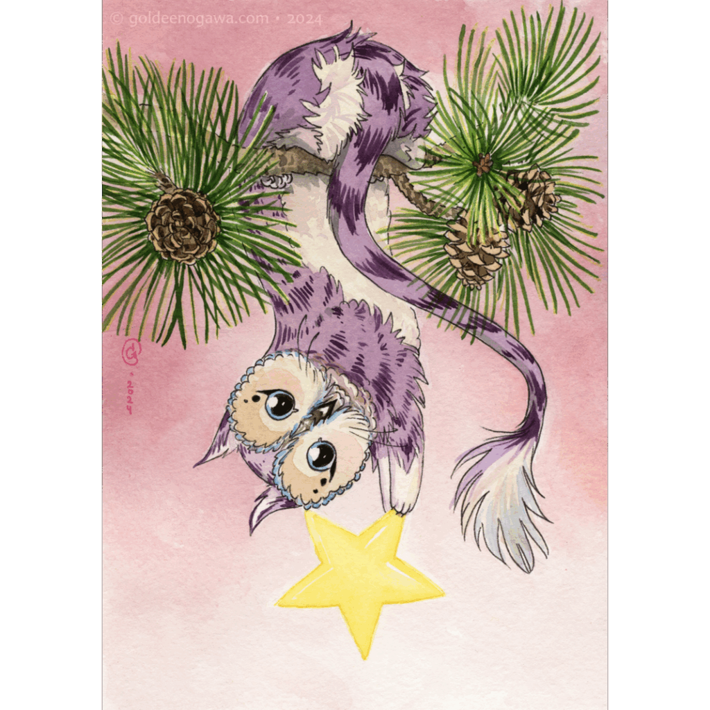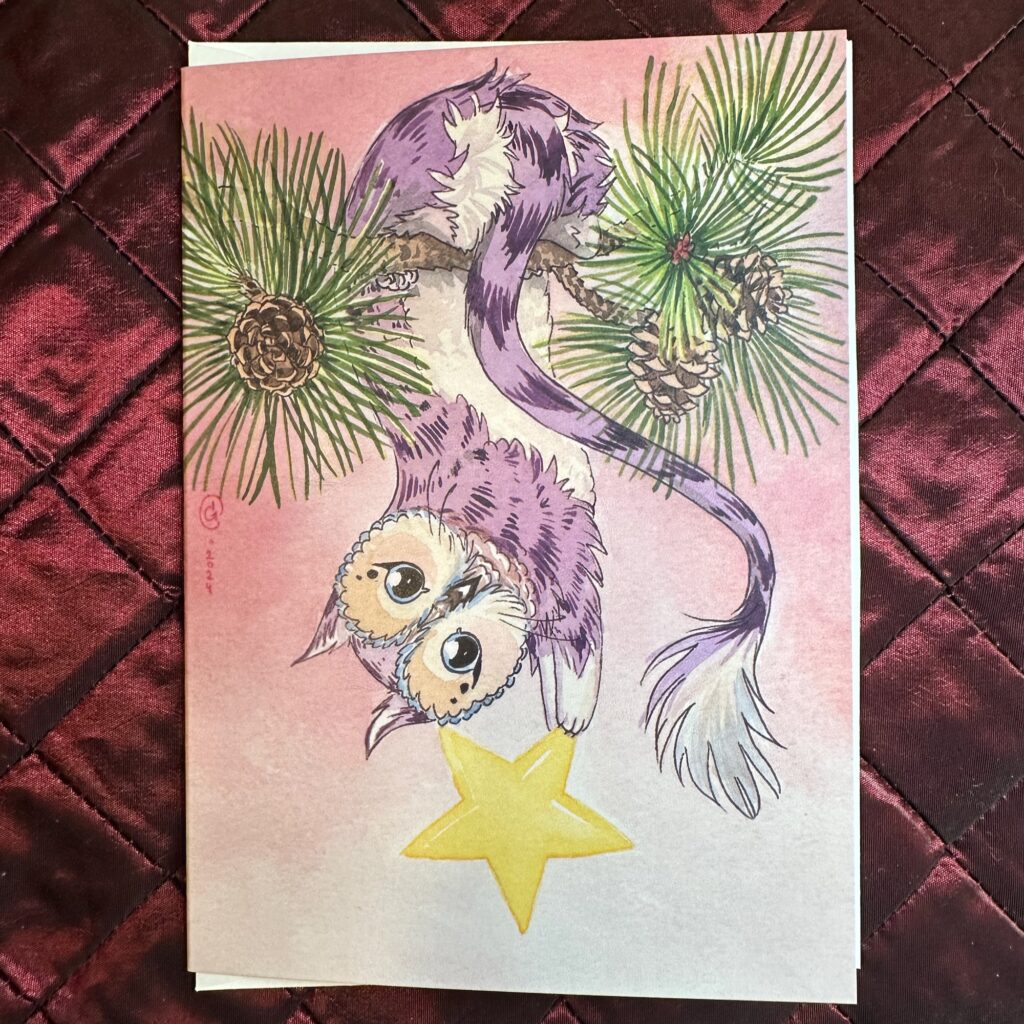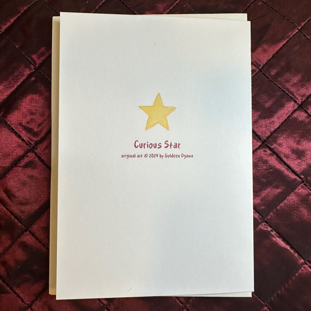Greet your friends and loved-ones this holiday seasons with an adorable card featuring the Curious Babe holding a very special star.